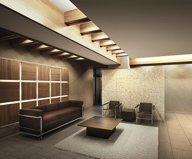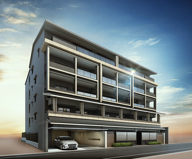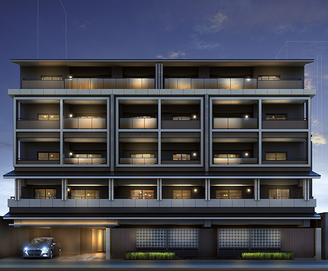 2階には小庇を設け複数か所のマリオンが上階の荷重を受けており、5階までは2枚の長い縦の壁が5階梁を支えている。最上階は荷重から解き放たれ、天に昇華するような軽さを示す。建物の構成を表現することが、見る人々に安心感を与え、知らずと建物が持つストーリーの中に入っていきます。ストーリーのある安心感のある建物、しかし案外どこにもなくよく見ると斬新であり、しかし古い街並みにマッチし、尚かつ景観をリードする。それこそが年月を経ても魅力がある、いつまでも住み続けたいと思う建物のエッセンスです。